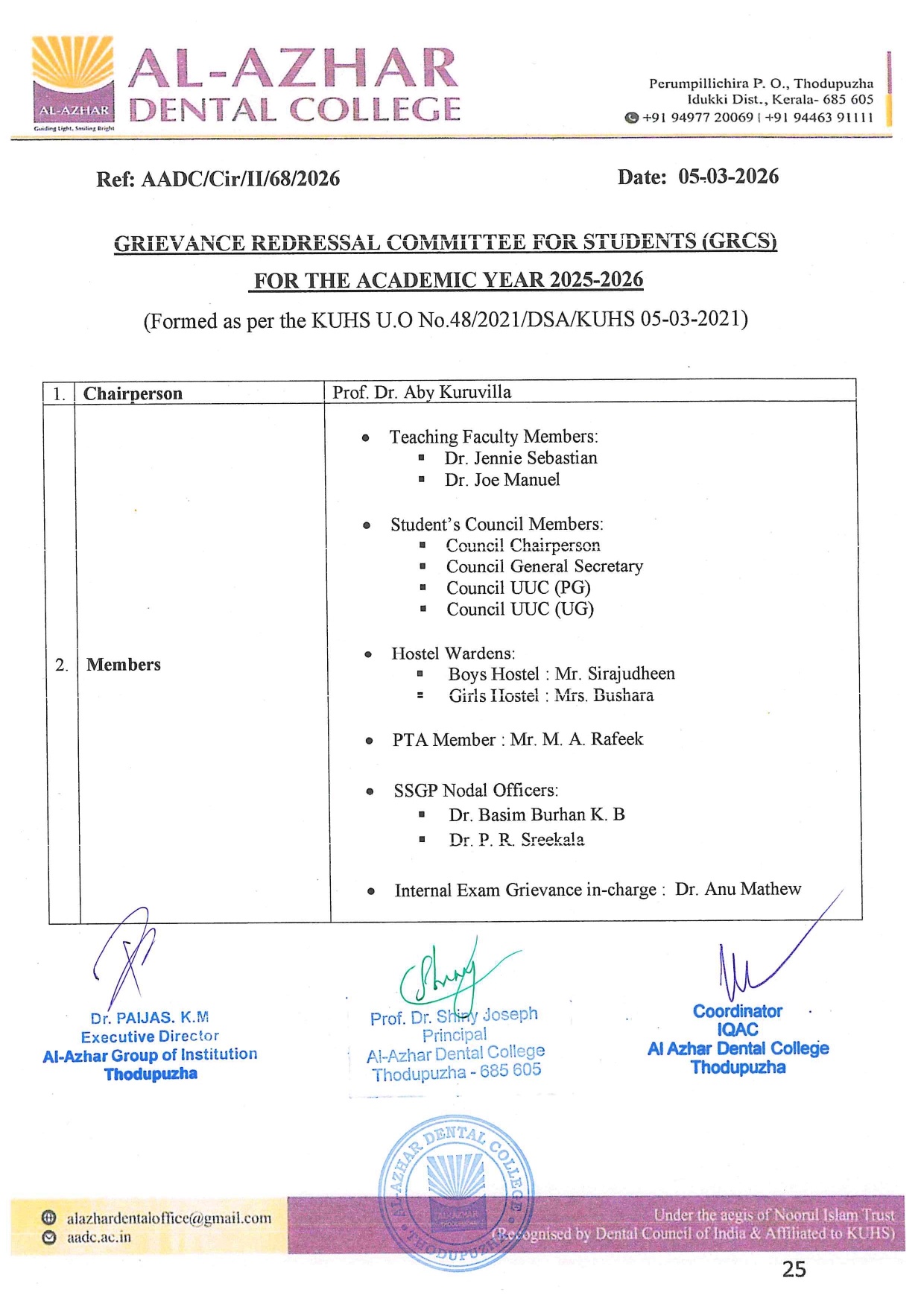 General Redressal Committee for Students